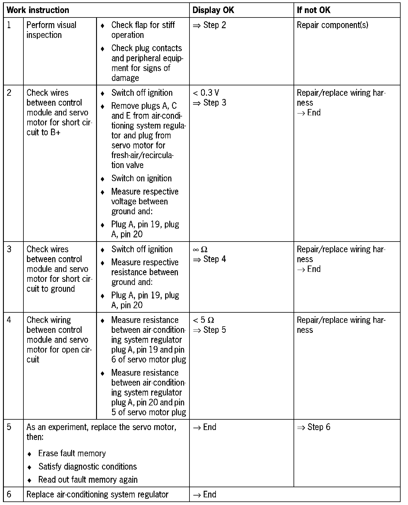 - Plug A: Pin 3 'Fresh-air/recirculation valve (feedback signal lead, servo motor for fresh-air/recirculation valve)'