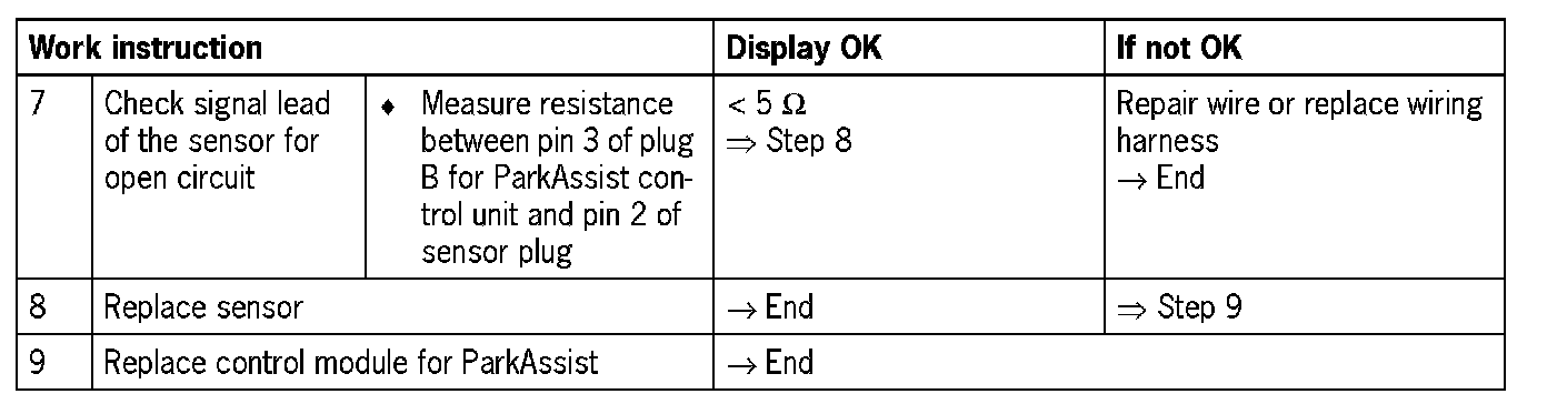 NOTE: Fault entry due to environmental conditions: this fault can also occur if the sensors are heavily soiled, iced-up or have been painted. In addition, intense sound sources such as pneumatic hammers can cause defects.