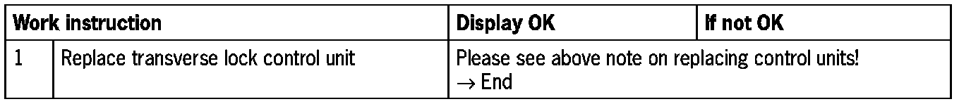 - 'Fault': transverse lock control unit plug faulty