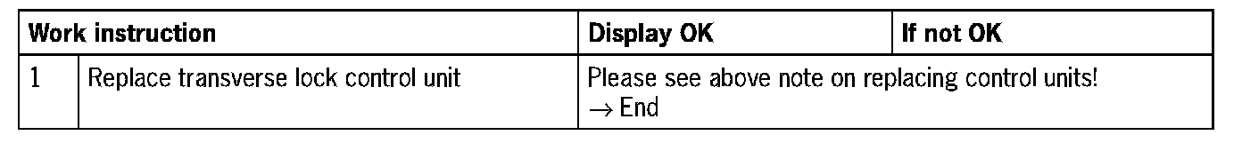 - 'Fault': transverse lock control unit plug faulty