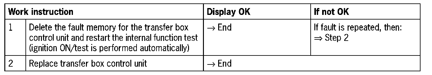 - 'Implausible signal': fault detected in computer during internal function test in transfer box control unit.