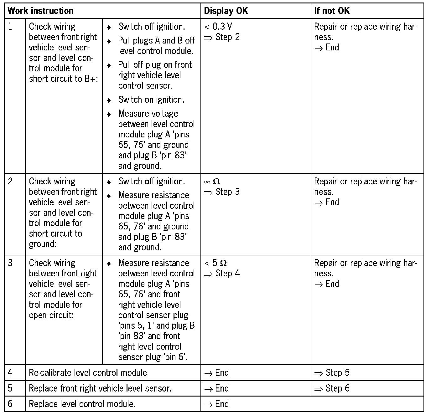 - Open circuit in one or more wires connected to pins 65, 76 and 83 of the level control module (electrical fault in electric circuit)