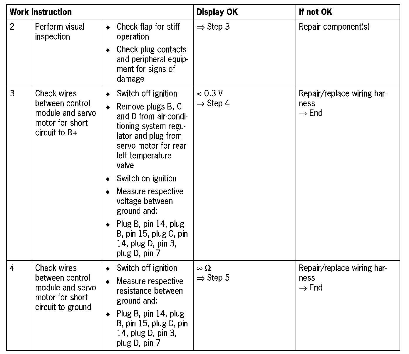 - Plug C: Pin 14 'Left temp. valve (feedback signal lead, servo motor for rear left temperature valve)'