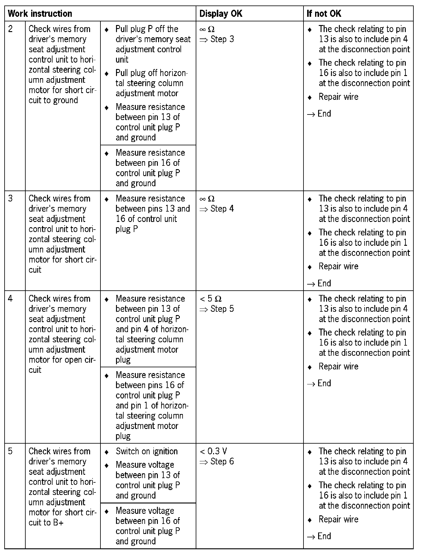 - No steering column adjustment possible in horizontal direction (short circuit to ground)