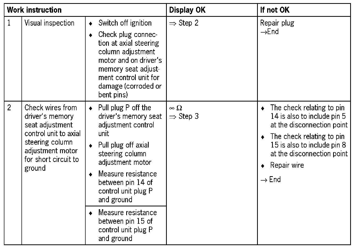 - No steering column adjustment possible in axial direction (Electrical fault in electric circuit)