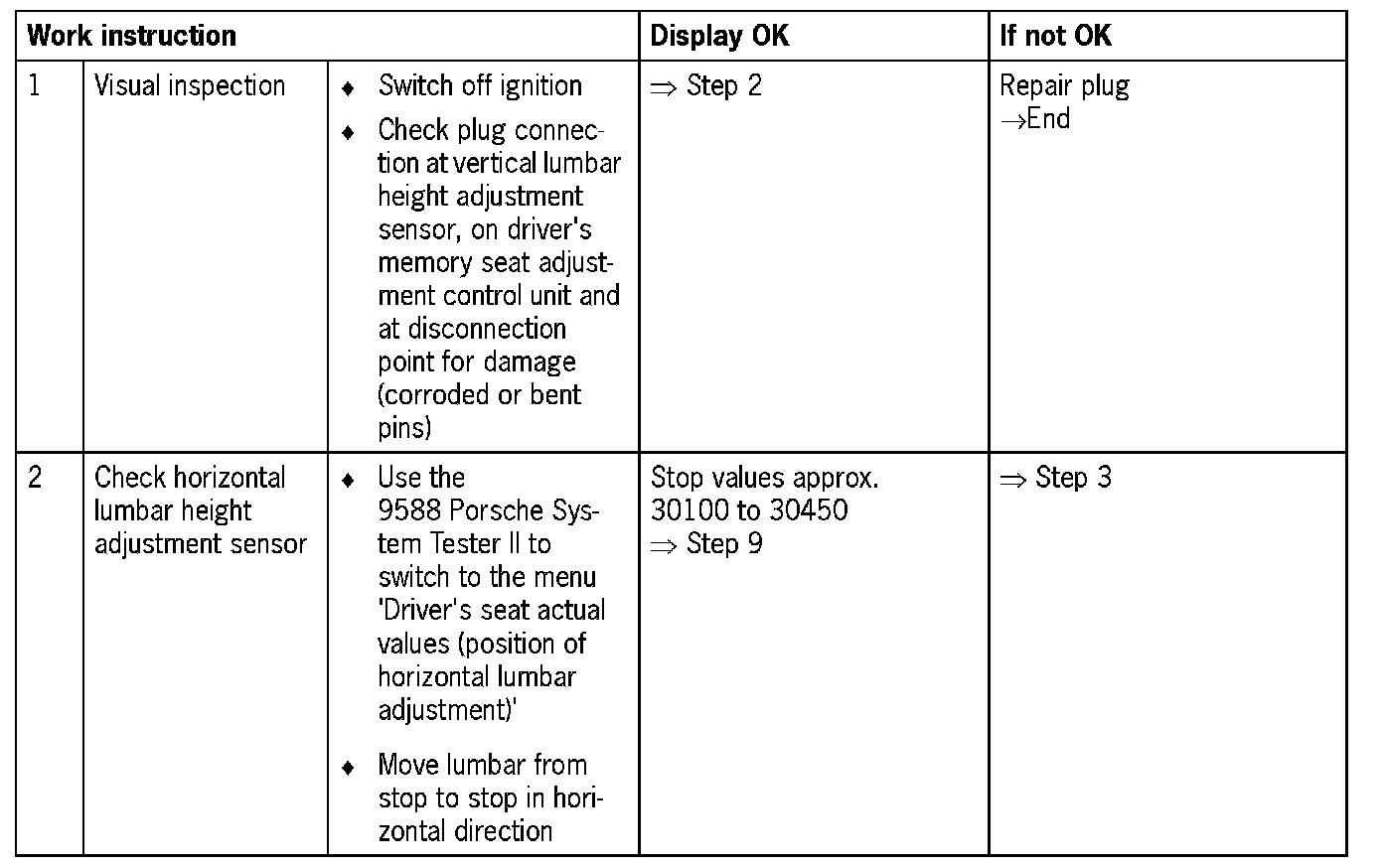 Sporadic faults: In the event of sporadic faults, wiring points attached to moving parts on and in the vehicle must be checked systematically. Various statuses that can cause faults must be simulated with the help of the wiring diagram.