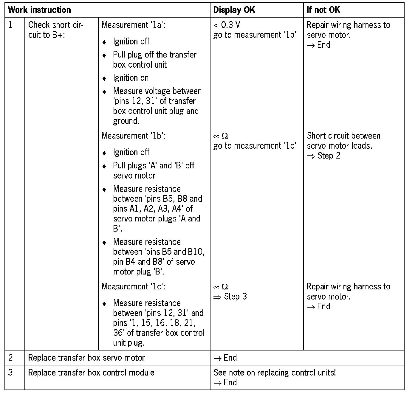 - 'Short circuit to B+': transfer box control unit faulty