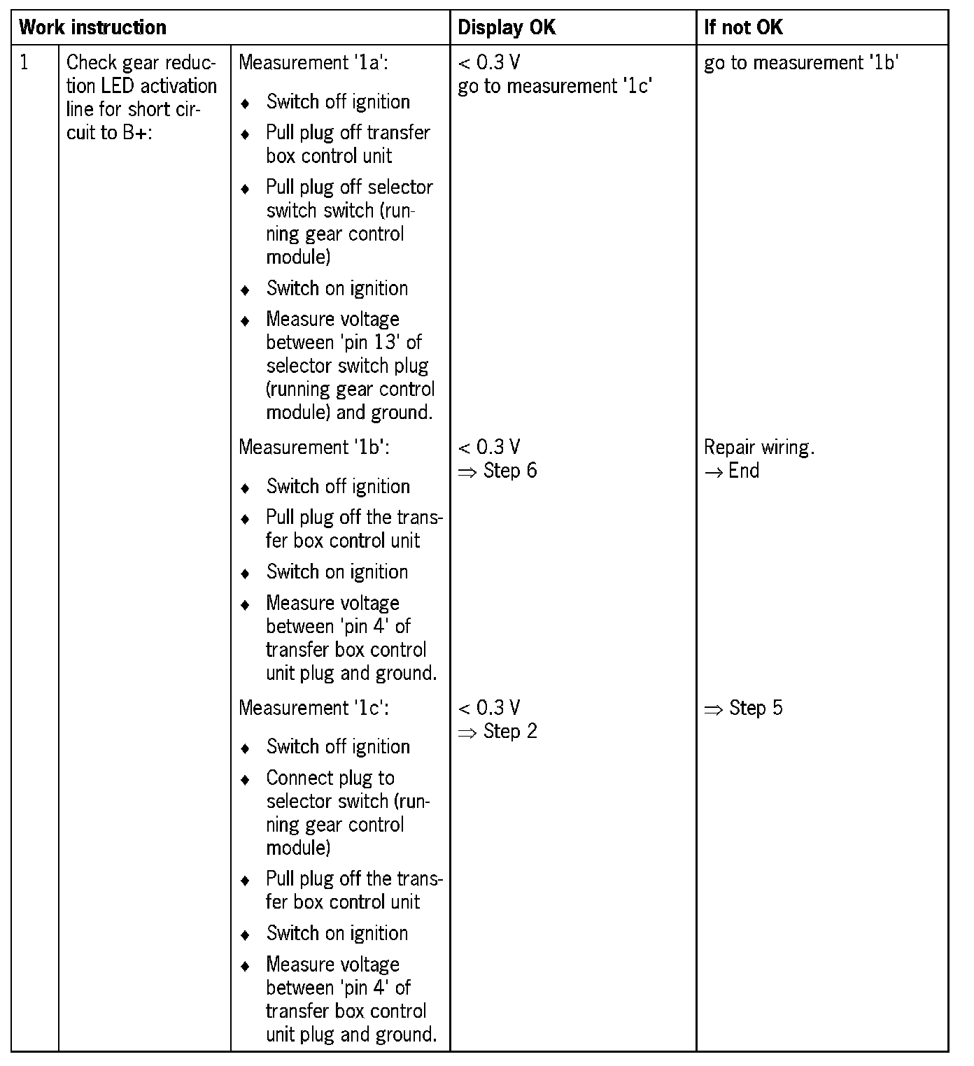 - 'Short circuit to B+': gear reduction LED does not light