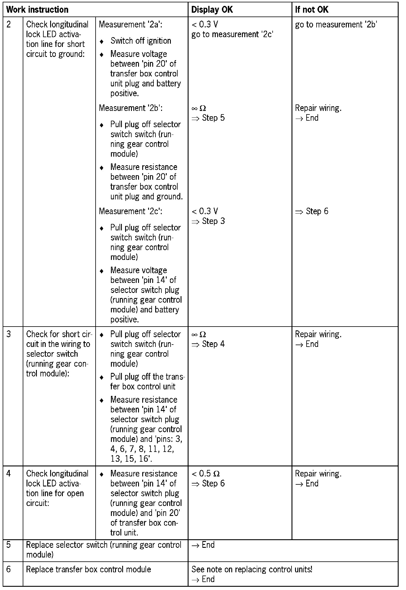 - 'Short circuit to ground': longitudinal lock LED permanently lit