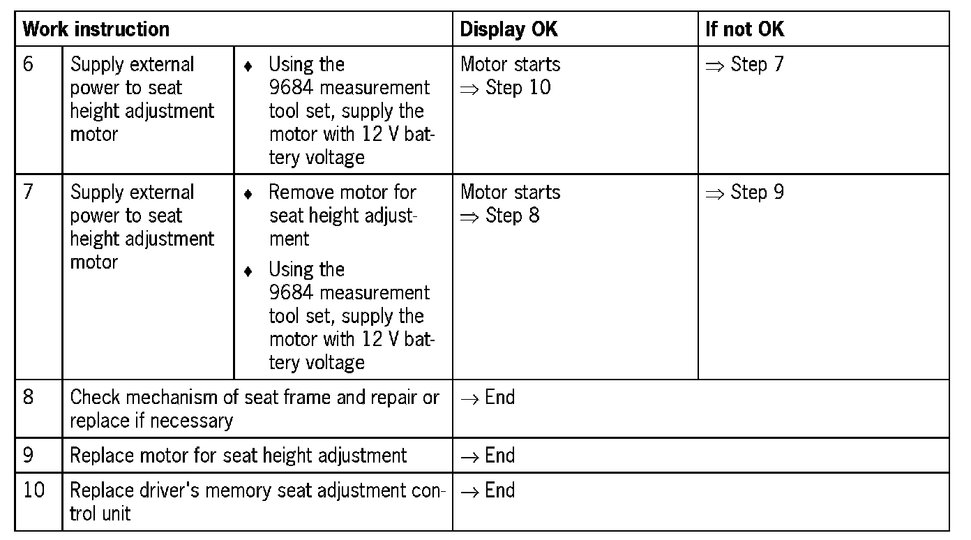 - Seat height adjustment motor does not function (Open circuit)