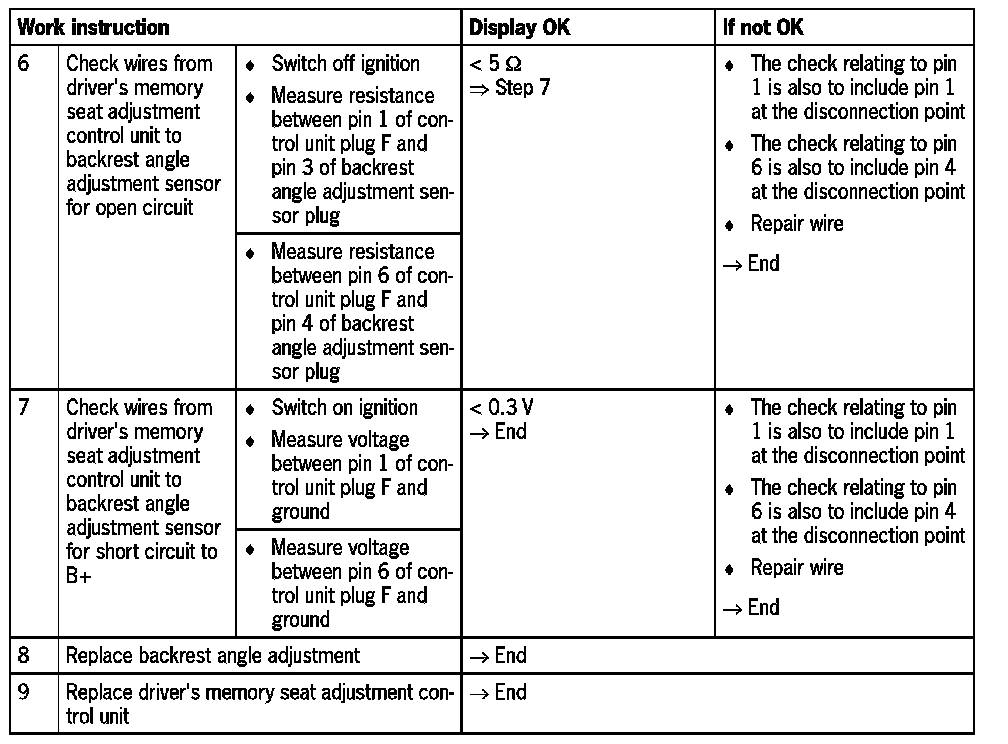 - In the wiring harness from the driver's memory seat adjustment control unit to the backrest angle adjustment sensor, there is a disconnection point which must be included in the checks.