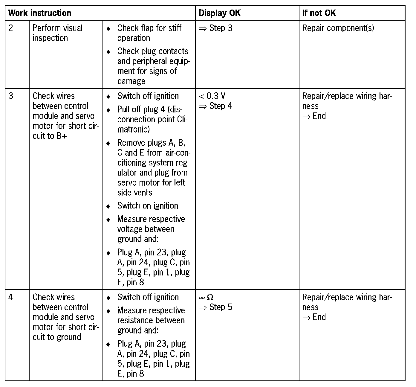 - Plug C: Pin 5 'Feedback signal for left side vents'
