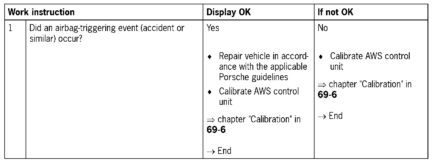 - Internal function test on AWS control unit
