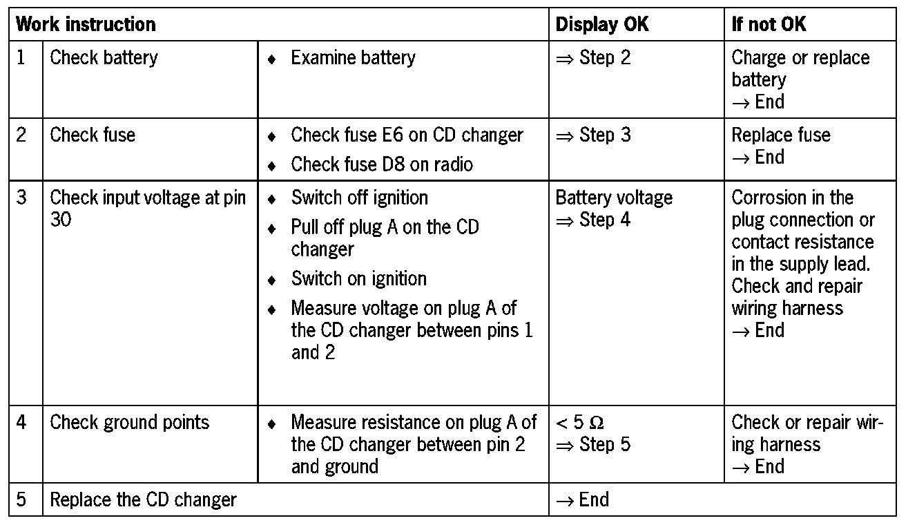 - Check fuses (fuse in CD changer under the cover)