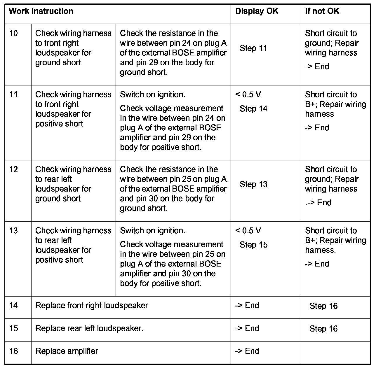 External BOSE amplifier, plug A, pin 24, pin 29, pin 25, pin 30