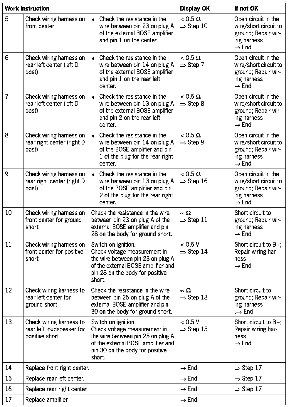 External BOSE amplifier, plug A, pin 23, pin 28, pin 13, pin 14.