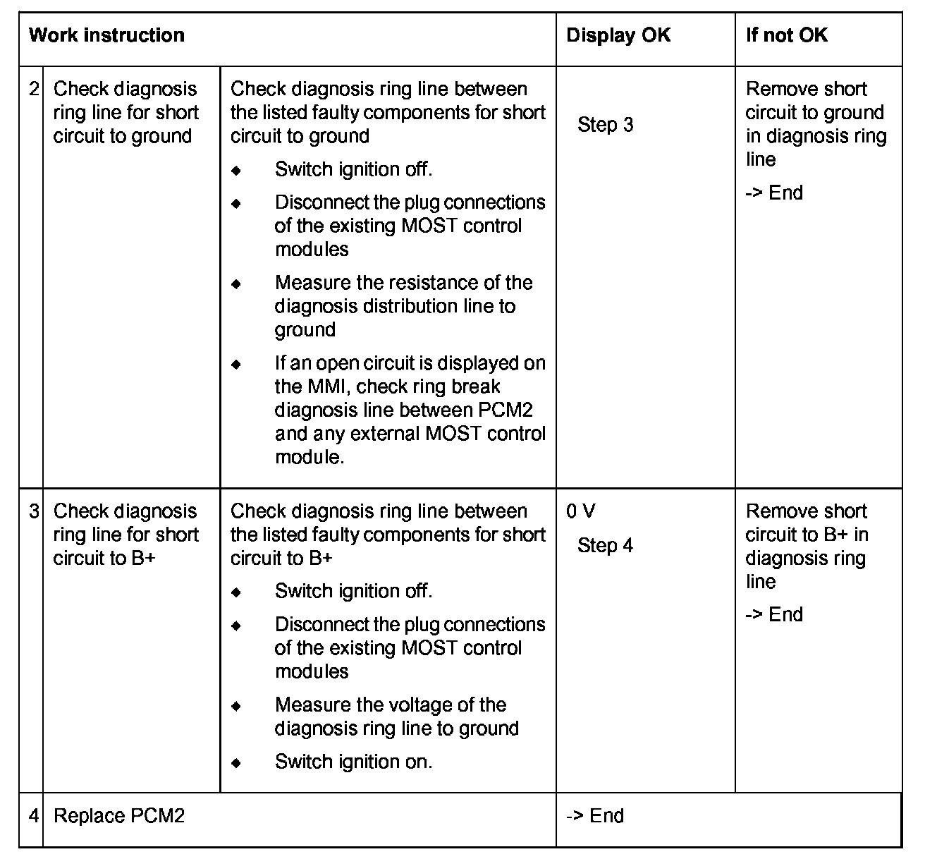 - Ring break diagnosis line: short circuit to ground/ B+ or open circuit