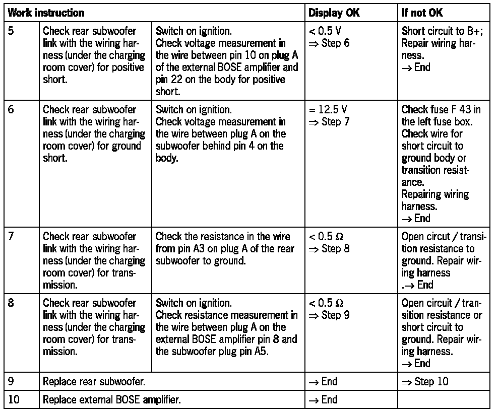 - External BOSE amplifier output stage faulty