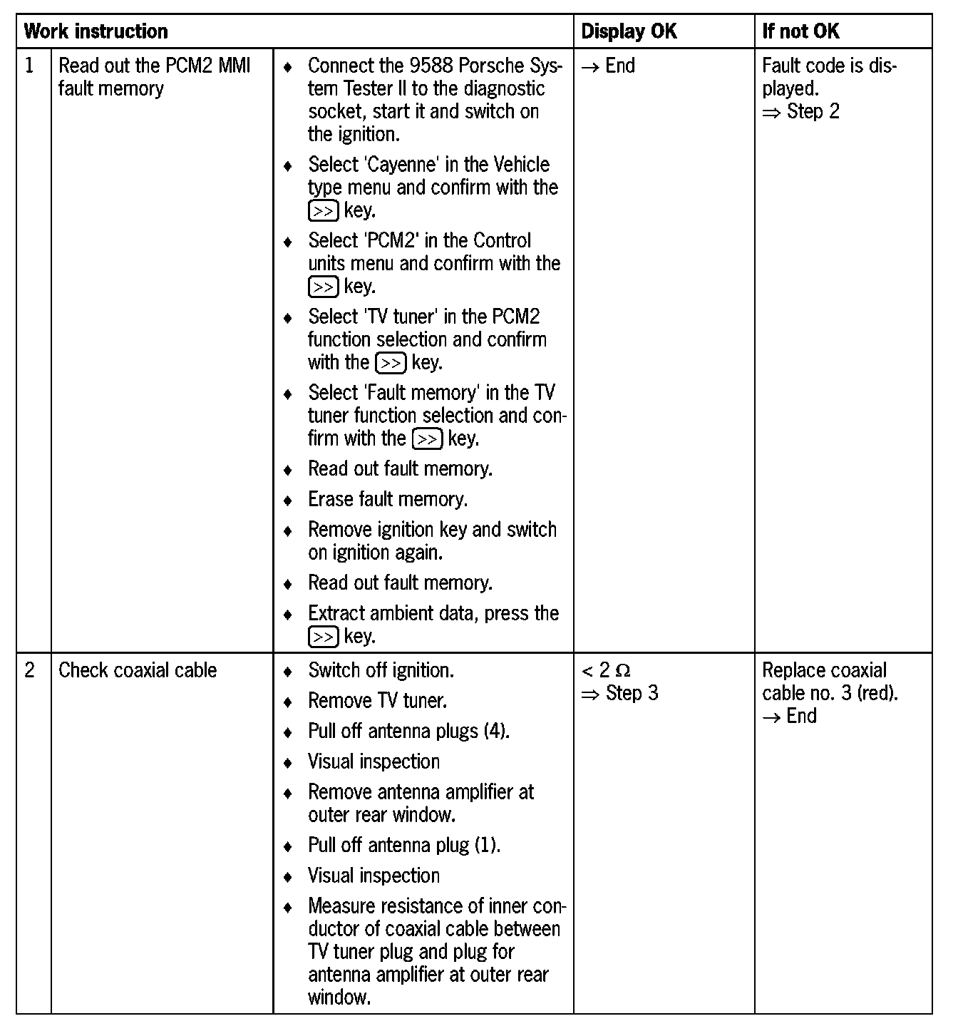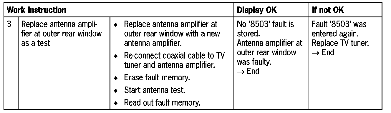 - Coaxial cable no.3 (red) not connected to TV tuner or antenna amplifier at outer rear window
