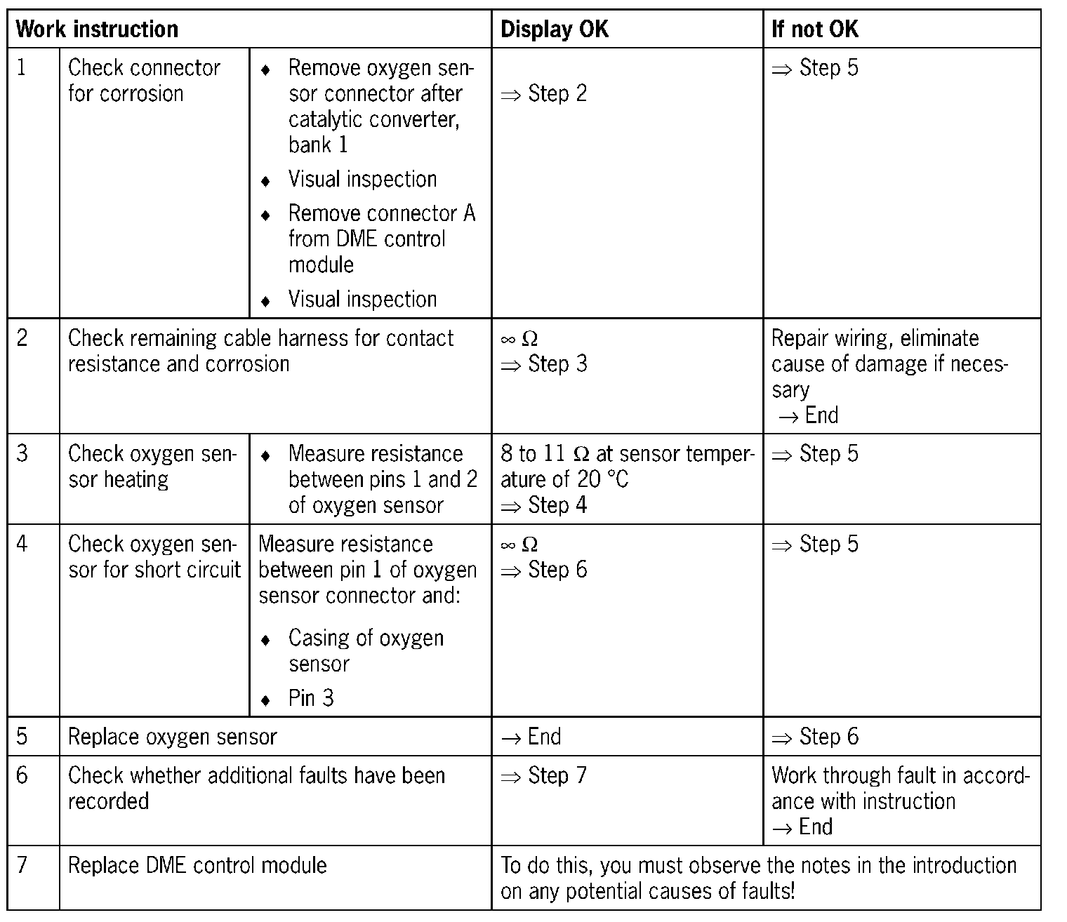 NOTE: Do not confuse oxygen sensor ahead of catalytic converter and oxygen sensor after catalytic converter as this will cause implausible fault entries.