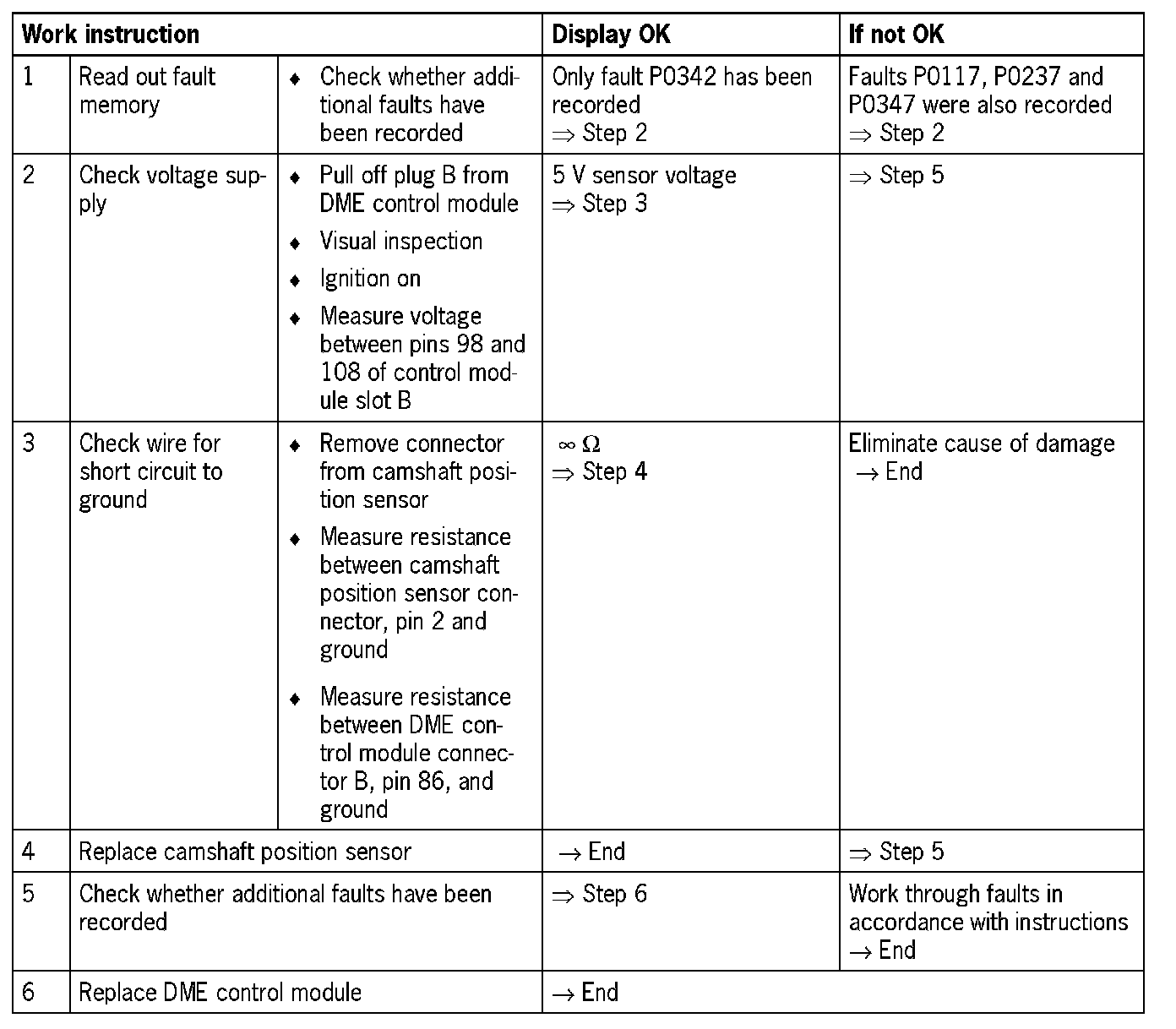 P0342Camshaft Position Sensor, Bank 1 - Below Limit