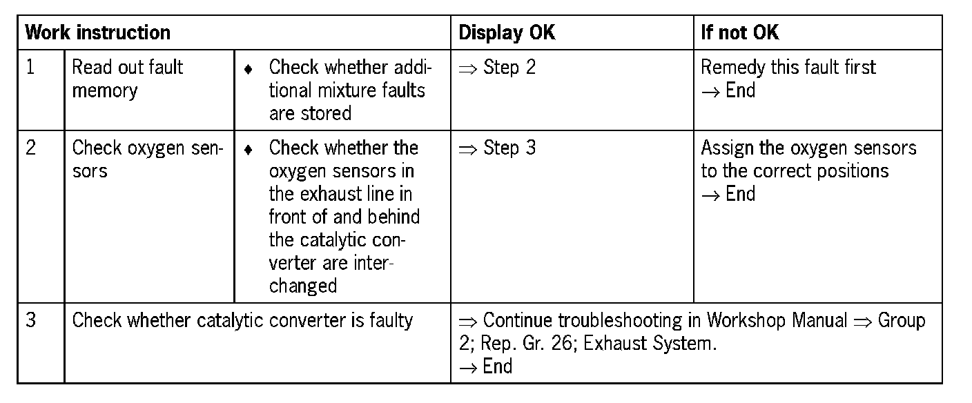 NOTE: Do not confuse oxygen sensor ahead of catalytic converter and oxygen sensor behind catalytic converter as this will cause implausible fault entries.