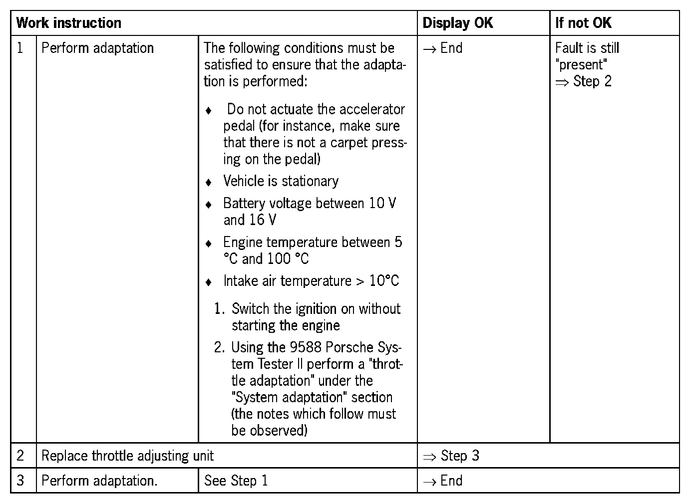 NOTE: This fault is only recorded if the adaptation was not performed correctly after the throttle adjusting unit or DME control module was replaced (adaptation aborted before 'fresh start' due to violated ambient conditions).