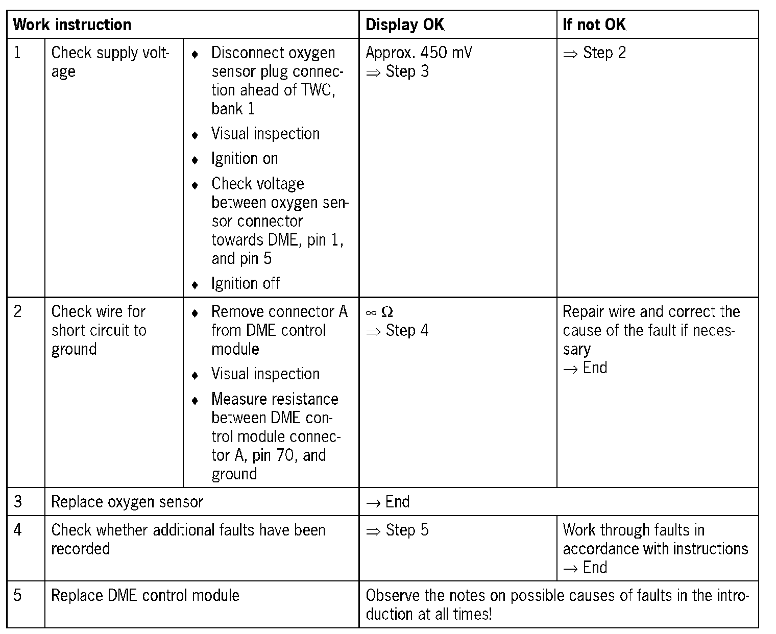 NOTE: Do not confuse oxygen sensor ahead of catalytic converter and oxygen sensor behind catalytic converter as this will cause implausible fault entries.