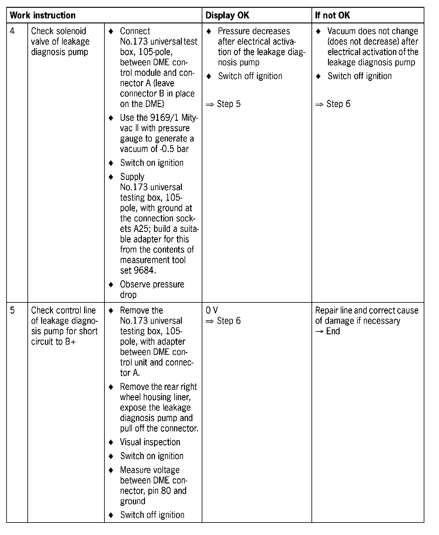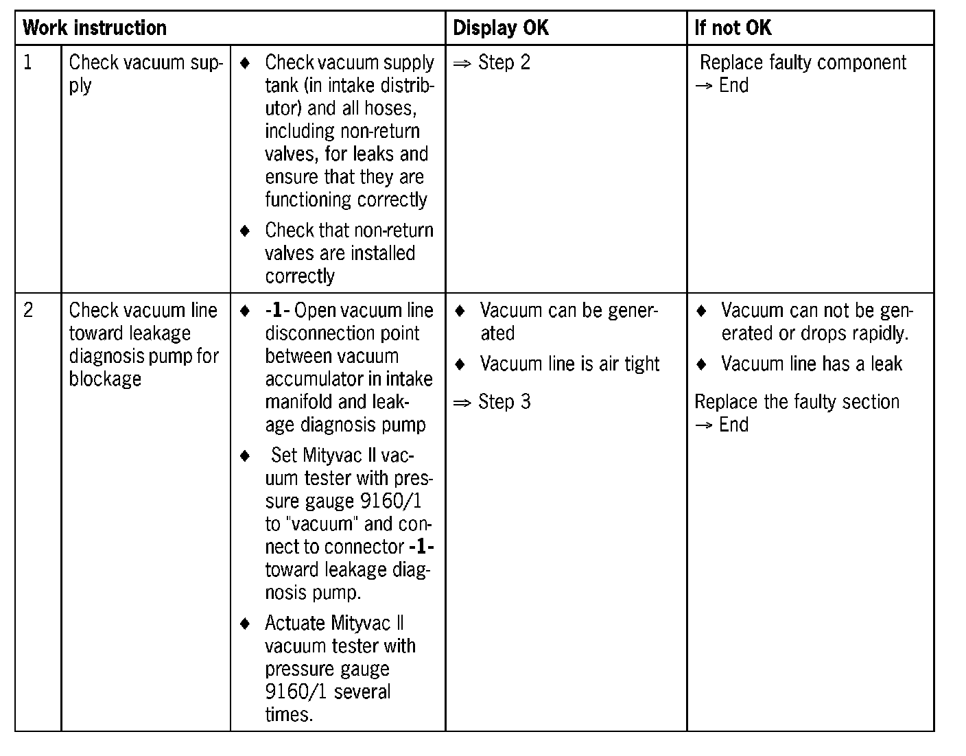 - Leakage diagnosis pump faulty (diaphragm or reed switch sticks, internal solenoid valve stays closed or is blocked)