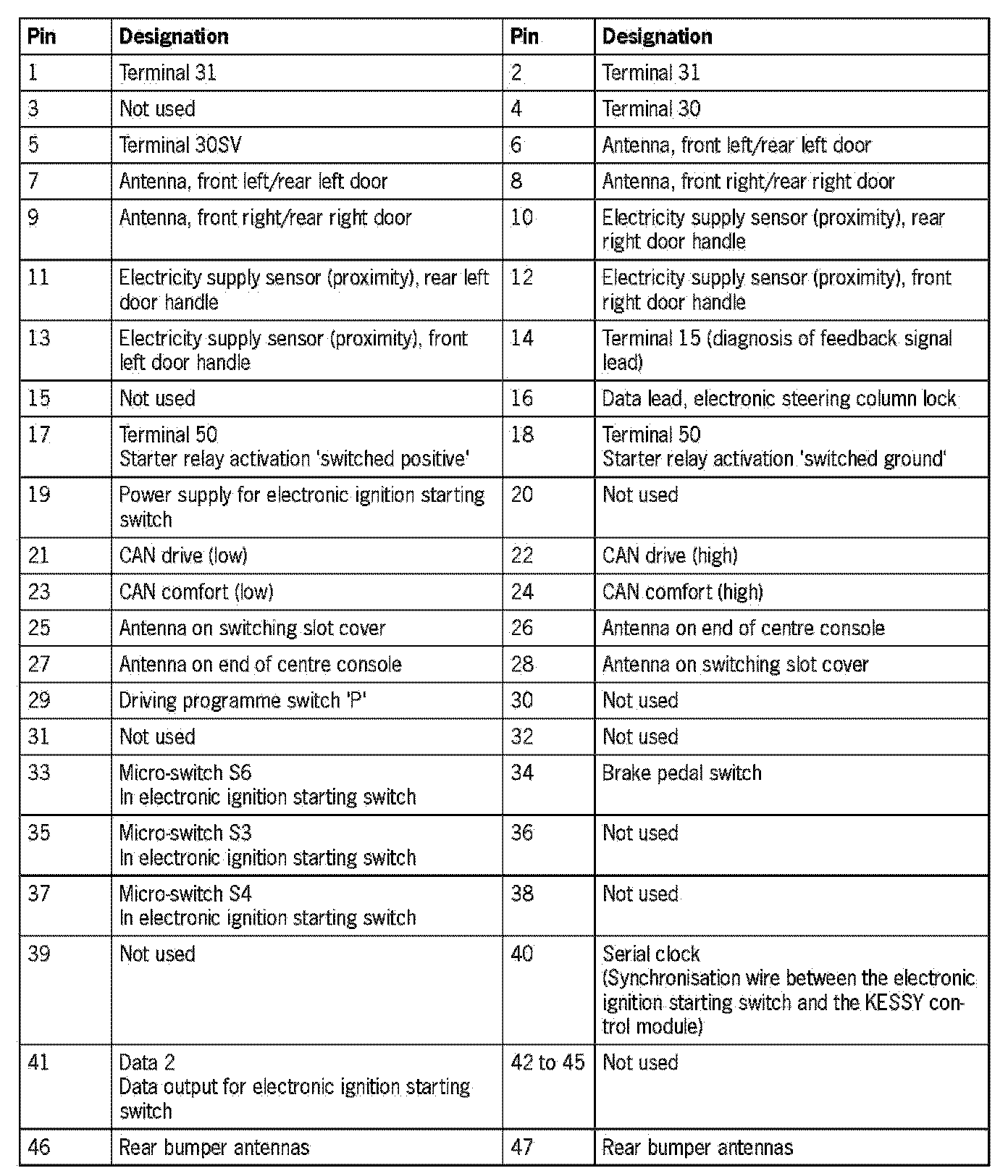 Connector assignmentPlug A and plug B for KESSY control module