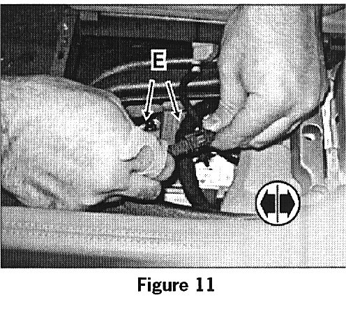29. Route the THB cable under the passenger seat (arrows in Figure 29).