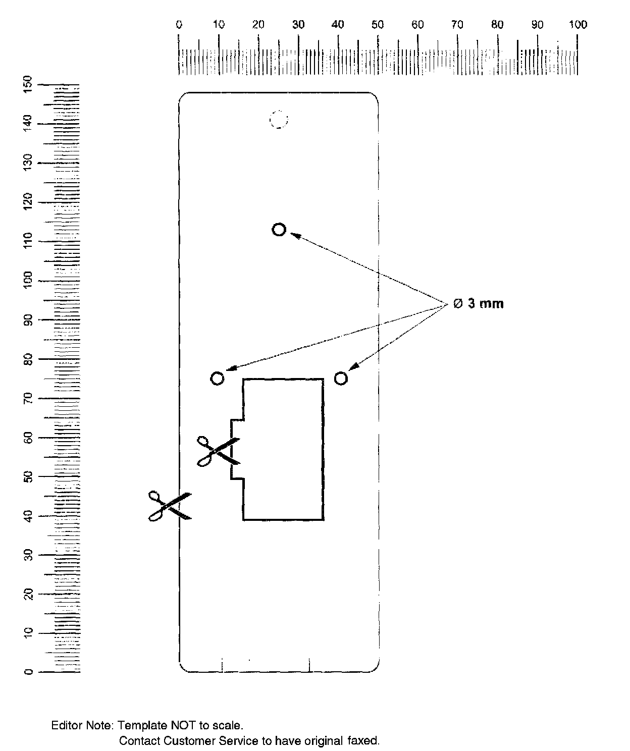 22. Make a copy of template and cut out. Verify copier scaling and check template measurements. See template at the end of this bulletin. See Editor note in illustration.