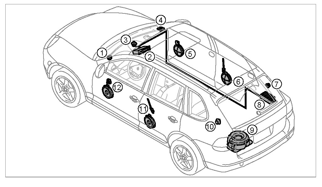 9 - High-power subwoofer (active) in the spare wheel well.