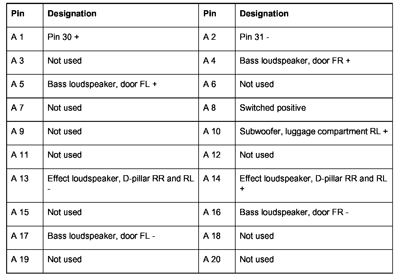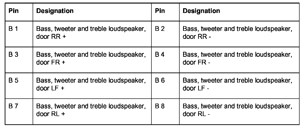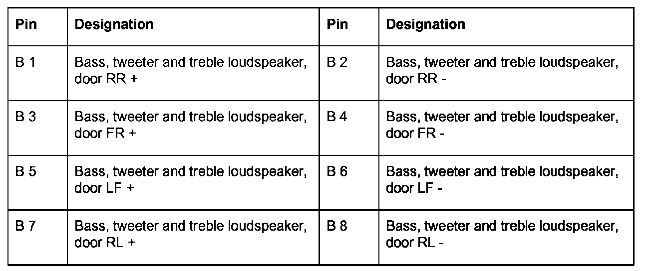 Connector pin assignments - external BOSE amplifier