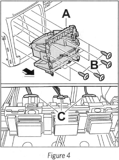 3 Install wire harness (retrofit kit) in center console.