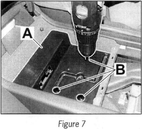 2.2 Insert console --> Figure 7-A- in center console storage bin and drill three holes with a diameter of 2.5 mm --> Figure 7 -B- in the center console floor.