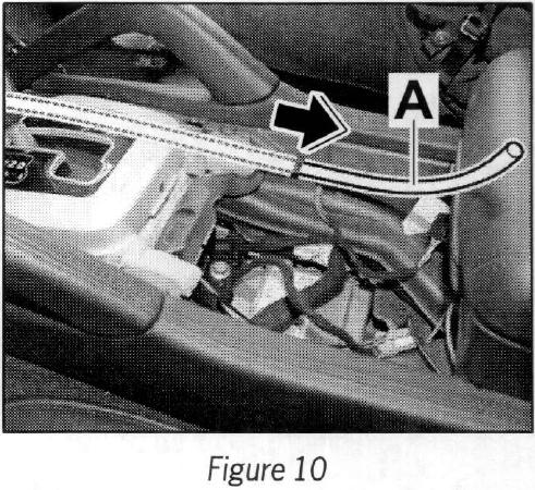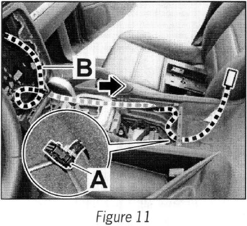Use the auxiliary line to route the wire harness (retrofit kit) --> Figure 11 -B- in direction of arrow through the center console.