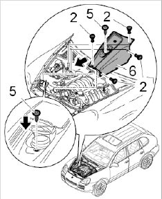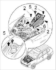 4.1. Insert trim panel on the right -6- underneath the lid seal and position in engine compartment.