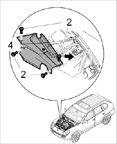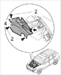 3.1. Insert trim panel on the left -4- underneath the lid seal and position in engine compartment.