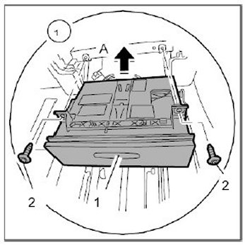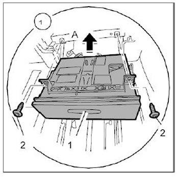 1. Insert front ashtray -1- ( -arrow A- ).
