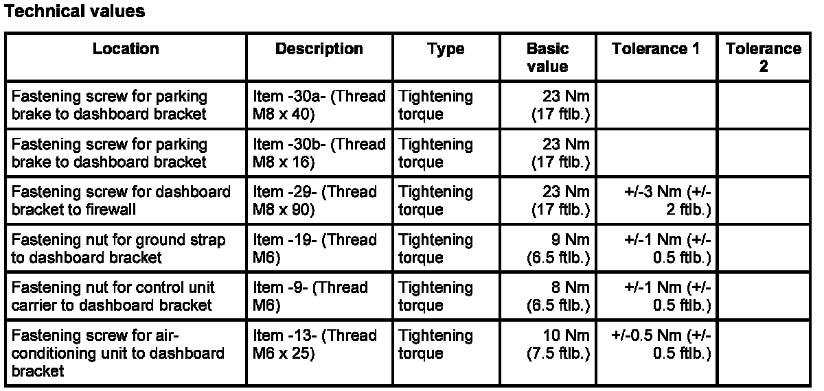 3. Screw in steering column at dashboard bracket. Refer to Removing and installing steering column.