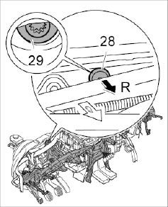 13.1. Remove -28- cover cap -Arrow R-.