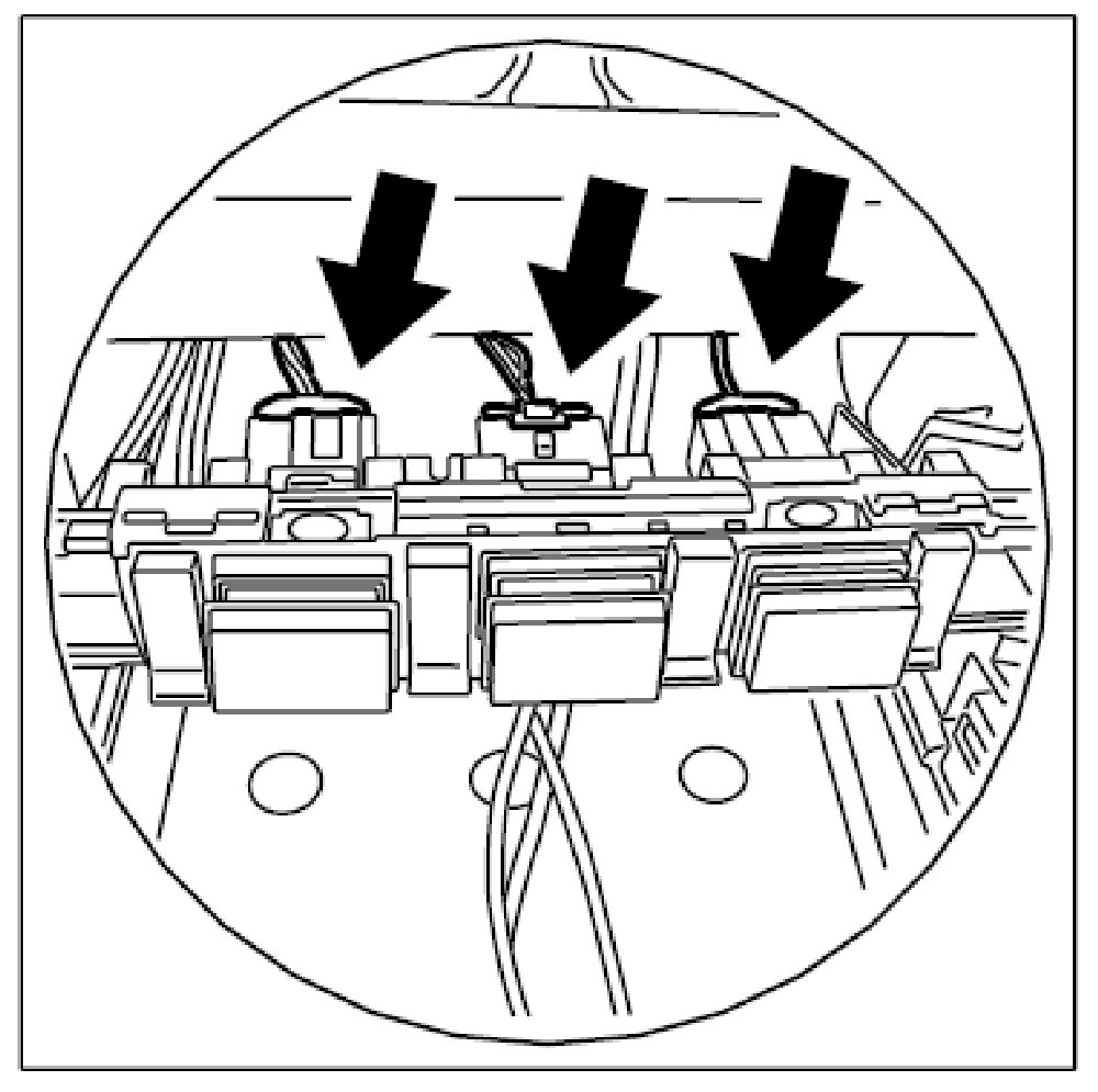 9. Push on the plug -arrows- until the locking tabs engage audibly.