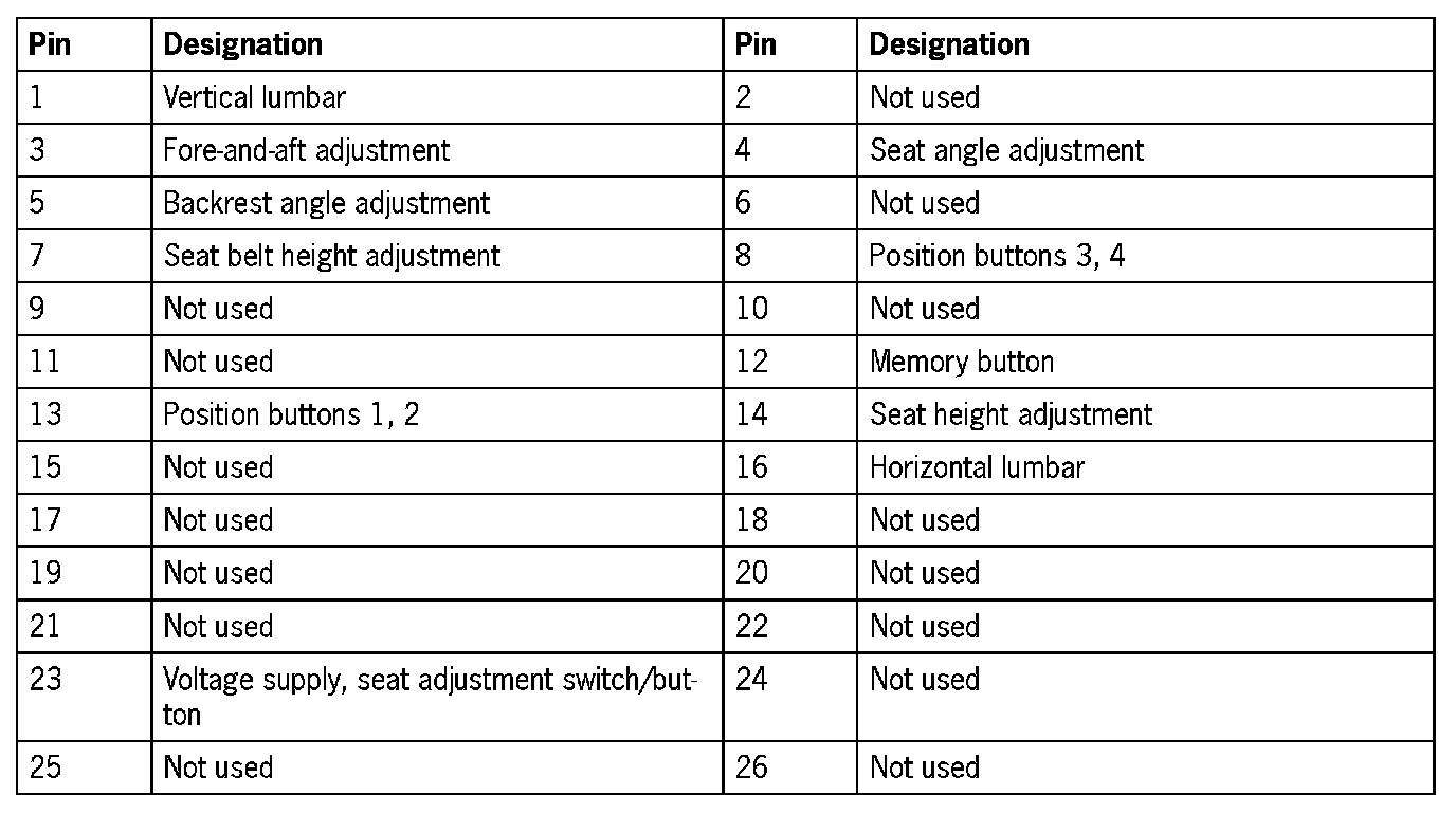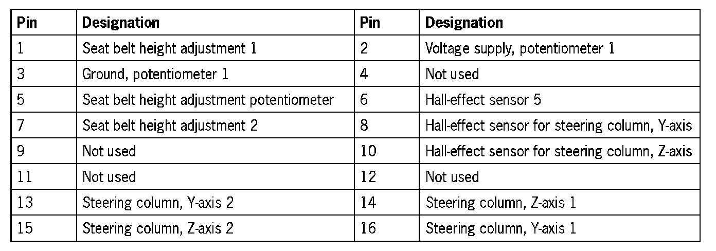 Connector P, 16-pin (only assigned for belt height and steering column adjustment)