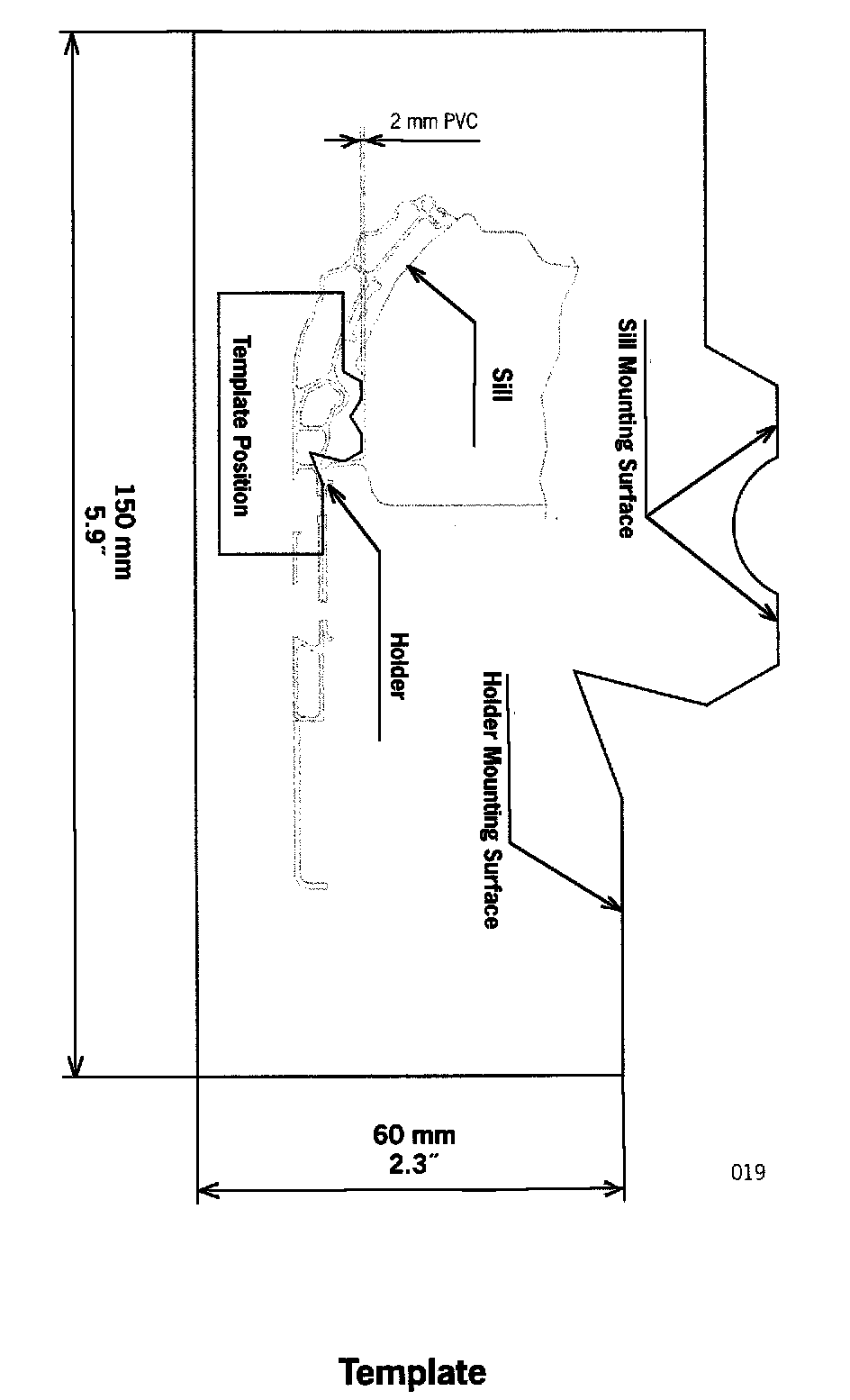 To correctly position the holder, a template must be prepared (see Template). After making a copy, the side lengths of the template must be checked. Take a ruler and verify that the template is the correct scale. There is the possibility that during printing and/or the copier process + or - scaling occurred. Template reference points are 150 mm X 60 mm. If your printed or copied template measurements when compared against a ruler do not match, make printer/copier output adjustments accordingly.