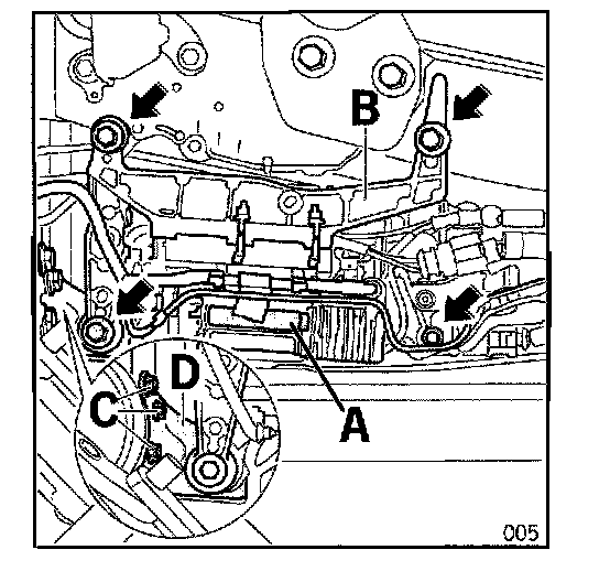 2.2.2 Unscrew screws (C) and remove holder for the compressor bracket (D).
