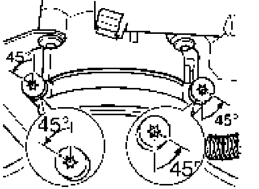 4. Release the fastening bolts on the throttle body. To do this, turn the right-hand bolt 45° counterclockwise, the left bolt 45° clockwise. The spot on the bolts must lie as shown in the picture.