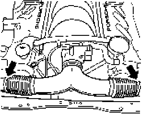 View of the catch springs when the radiator has been removed