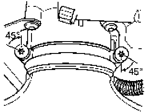 7. Slide the Y pipe onto the throttle adjuster. Then insert the left and right fastening bolts. Turn the right bolt 45° clockwise and the left bolt 45° counterclockwise.