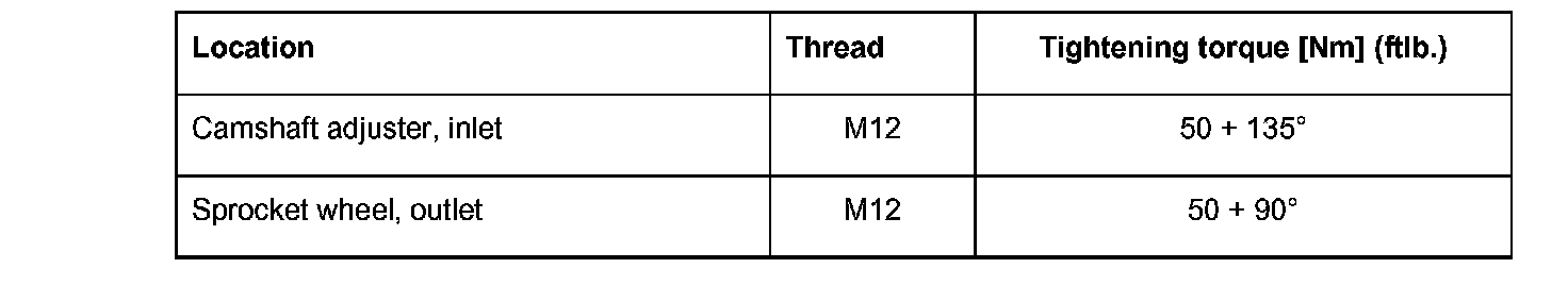 Note: There is a diamond washer between the camshaft and camshaft wheel or camshaft adjuster. This is to be replaced after the corresponding wheel has been removed. If the fastening screw of the wheel is only loosened in order to adjust the timing (1 or 2 revolutions), the diamond washer does not need to be replaced.